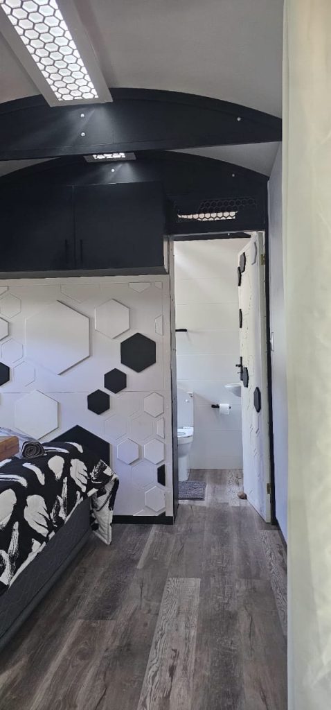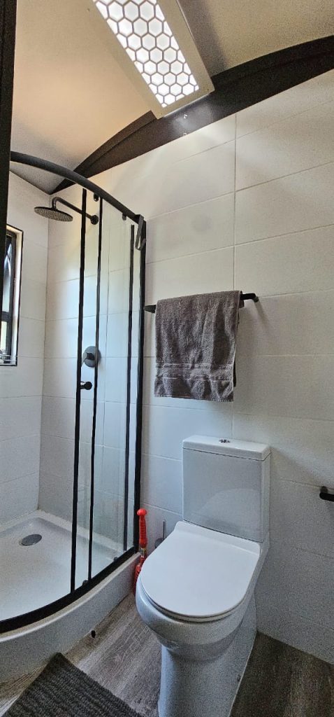 The kitchen is perfectly equipped with a fridge, large freezer and a gas burner stove. We provide a 1 x 9 kg gas, thereafter self refill